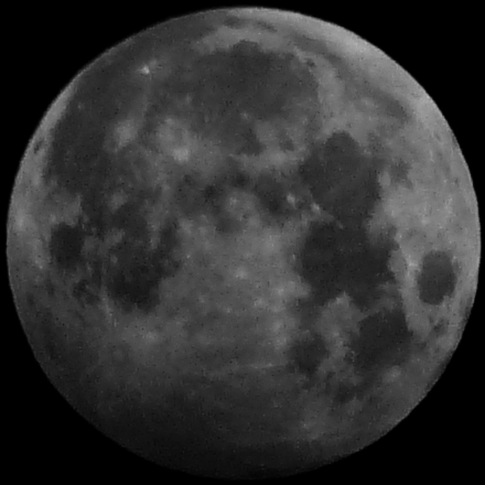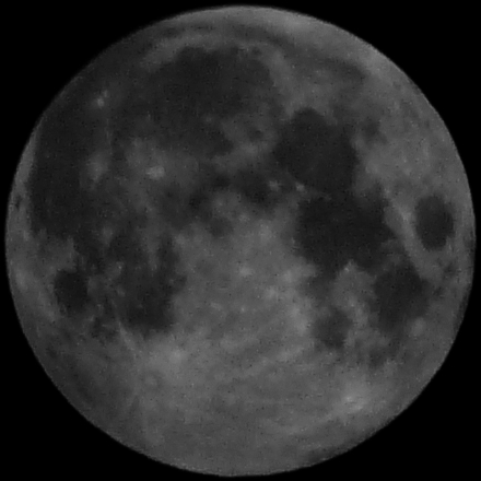Im ersten Bearbeitungschritt wurde der Mond mit dem frei erhältlichen und weit verbreiteten Bildbearbeitungsprogramm Irfanview in allen Aufnahmen ausgeschnitten, woraus eine Bildgröße von 440*440 Pixeln resultierte. Die Fotos wurden anschließend in Graustufen unkomprimiert abgespeichert. Angeregt durch die weiter oben zitierten Arbeit von Dorst wurden die Fotos im nächsten Schritt erneut in Irfanview geladen und dort der Kontrast drastisch angehoben sowie Gamma deutlich reduziert.